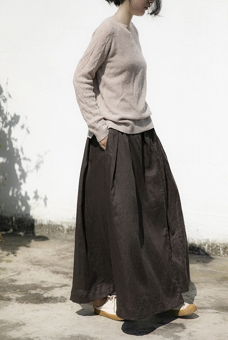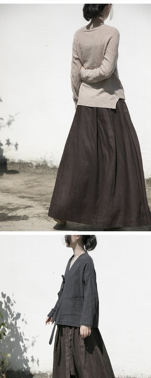 Shan QianNianyiオリジナル2020年秋冬新作森女性文学Aラインラージレースアップヘビーリネンスカート シルク24097799261