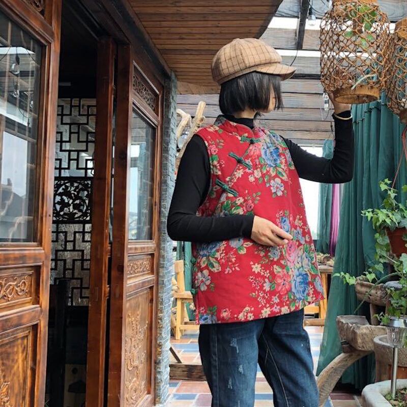 2020年秋冬新作古泥オリジナル中華民国婦人服中華風改良サイドカーディガンキルティングチョッキベスト シルク98245874527